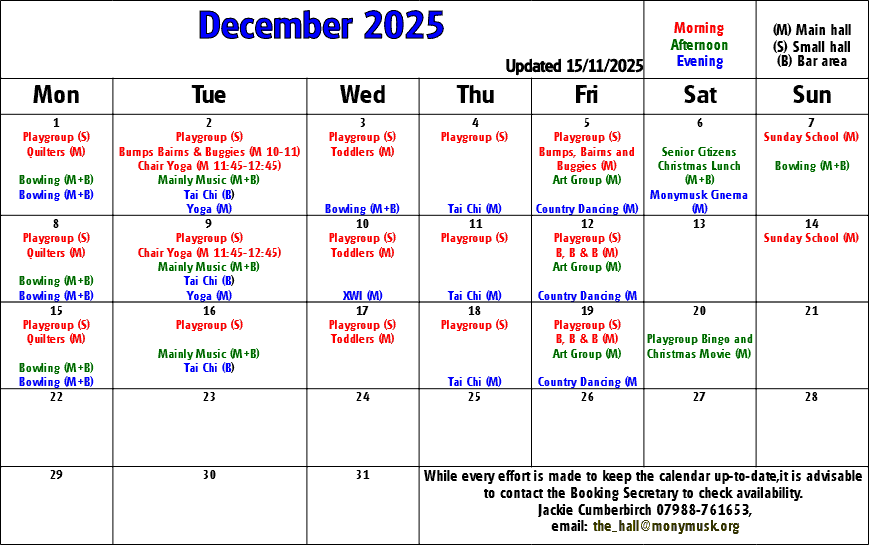 Monymusk Village Hall is a Charity registered in Scotland as Monymusk Village Hall Management Committee - SC038241